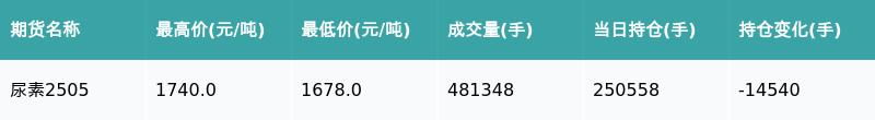南方财经1月17日电,南财金融终端盘后期货数据显示,郑州商品交易所的尿素主力合约收涨2.97%,收盘报1733.0元/吨,日内资金流出4161.06万元。其他相关指标见下表: